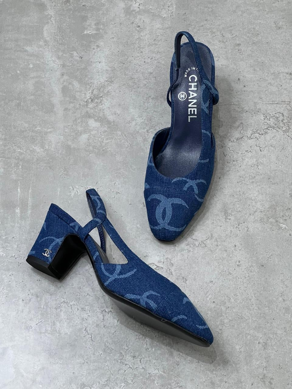 Chanel heels denim blue